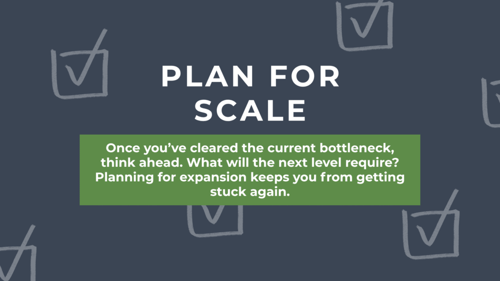 And while bottlenecks can be frustrating, they’re also a sign of something positive: you’ve outgrown your current setup. You’ve reached the limit of your space, systems, or structure — and that means it’s time to scale.
